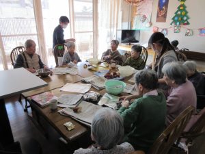 みなさんで焼く準備をしてもらいます。